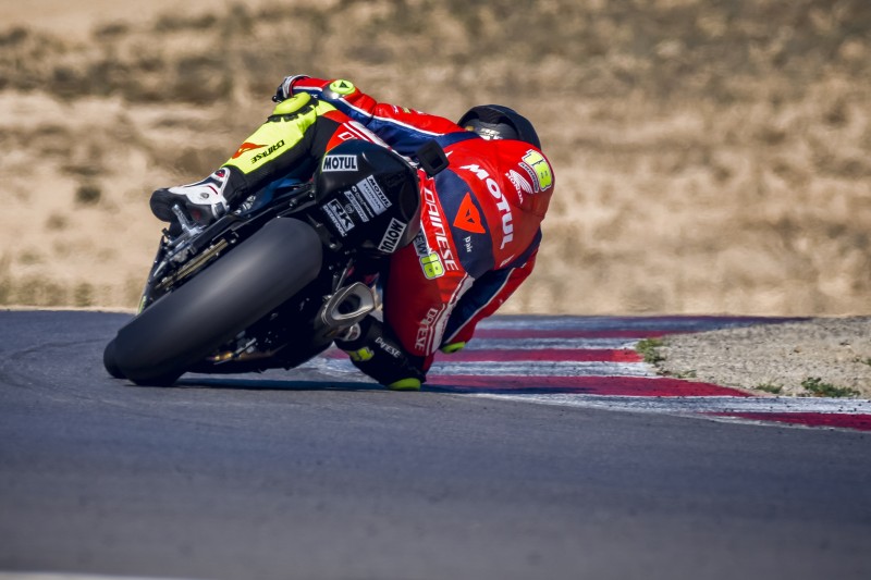 After getting a run out on the road bike at Portimao for the press launch it’s been great to get a go on a bit more of a race bike, yeah it’s only a Superstock, but it’s good to get an understanding of the way the inline-four engine works, the way the chassis works and the split throttle. Honestly, the feeling is really positive. We’re focusing on understanding the split throttles which has been really important as that understanding forms the fundamentals of what we develop going forward. The chassis too is encouraging, I rely heavily on front-end feeling, riding with a lot of brake pressure and trailing the brake hard into the corner, and this test has given me some real confidence in those areas. It’s all positive, I just want to get going on the Superbike at the Donington test.![]()