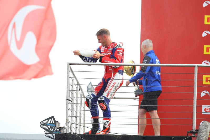 With the red flag waving due to a crash and signalling the end to a now shortened race one, the result was declared. Tommy picked up a sensational second place finish and doubled his Honda trophy haul. He heads into tomorrow's races targeting his first win. Andrew Irwin and Dean Harrison both made progress in the race to finish in fourteenth and seventeenth respectively.